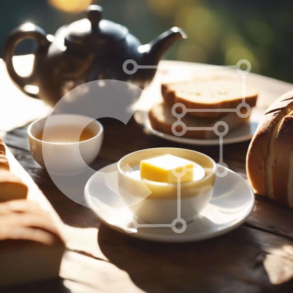 Υπάρχει δυνατότητα προσωποποίησης με δική σας φωτογραφία και προσαρμογής διαστάσεων κατόπιν παραγγελίας. Το συγεκεριμενο puzzle παρουσιαζει Η εικόνα δείχνει ένα τραπέζι στολισμένο με ένα απολαυστικό άλειμμα, με ψωμί, βούτυρο και σάλτσα. Ένα μπολ με βούτυρο βρίσκεται στο επίκεντρο, που συμπληρώνεται από δύο φλιτζάνια που τοποθετούνται κοντά. Επιπλέον, ένα άδειο φλιτζάνι σε πρώτο πλάνο προσφέρει τη δυνατότητα σερβιρ