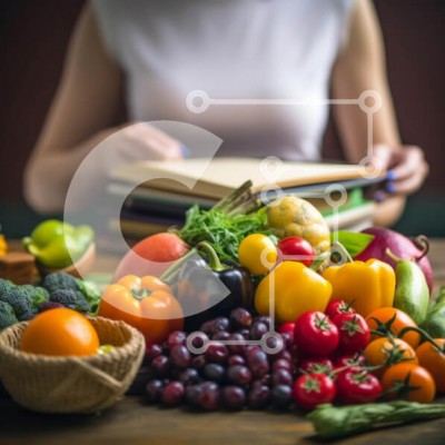 Υπάρχει δυνατότητα προσωποποίησης με δική σας φωτογραφία και προσαρμογής διαστάσεων κατόπιν παραγγελίας. Το συγεκεριμενο puzzle παρουσιαζει Η εικόνα δείχνει μια γυναίκα να κάθεται μπροστά από μια σειρά από φρέσκα φρούτα και λαχανικά, συμπεριλαμβανομένων ντομάτες, αγγούρια, μήλα και καρότα. Ένα βιβλίο τοποθετείται στην κορυφή του τραπεζιού, υποδεικνύοντας ότι το διαβάζει κοιτάζοντας την πολύχρωμη σειρά προϊόντων. Υ