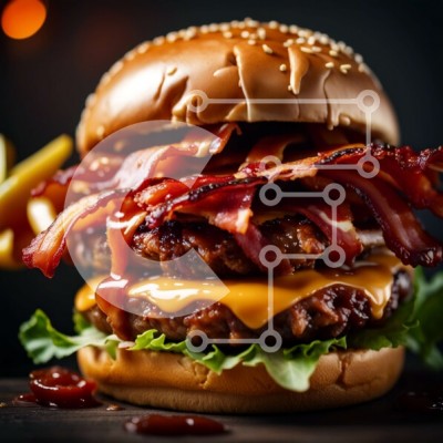 Υπάρχει δυνατότητα προσωποποίησης με δική σας φωτογραφία και προσαρμογής διαστάσεων κατόπιν παραγγελίας. Το συγεκεριμενο puzzle παρουσιαζει Αυτή η εικόνα παρουσιάζει ένα λαχταριστό χάμπουργκερ με μπέικον, τυρί και τηγανιτές πατάτες. Το μπιφτέκι είναι τέλεια μαγειρεμένο και ολοκληρώνεται με τραγανό μπέικον και λιωμένο τυρί. Σερβίρεται με χρυσαφένιες τηγανητές πατάτες, καθιστώντας το ένα χορταστικό και ακαταμάχητο γ