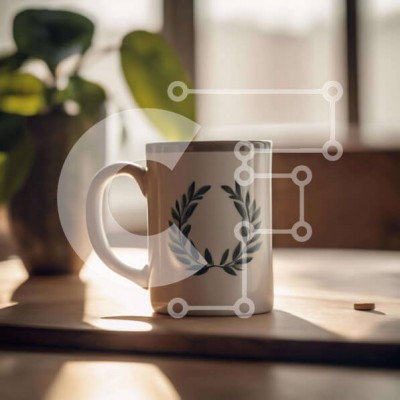 Υπάρχει δυνατότητα προσωποποίησης με δική σας φωτογραφία και προσαρμογής διαστάσεων κατόπιν παραγγελίας. Το συγεκεριμενο puzzle παρουσιαζει Η εικόνα παρουσιάζει μια λευκή κούπα καφέ με ένα διακοσμητικό σχέδιο δάφνινο στεφάνι πάνω της, τοποθετημένη σε ένα ξύλινο τραπέζι μπροστά από διακοσμητικά φυτά. Ο τύπος του ροφήματος που καταναλώνεται είναι απροσδιόριστος, αλλά πιθανόν να είναι τσάι ή καφές. Ένα μοναδικό puzz