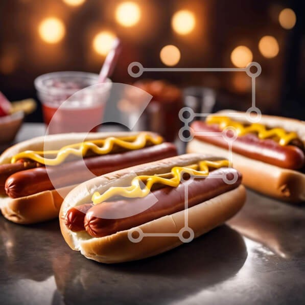Υπάρχει δυνατότητα προσωποποίησης με δική σας φωτογραφία και προσαρμογής διαστάσεων κατόπιν παραγγελίας. Το συγεκεριμενο puzzle παρουσιαζει Αυτή η εικόνα παρουσιάζει πολλά χοτ ντογκ τοποθετημένα σε μια μεταλλική επιφάνεια, με κίτρινη μουστάρδα. Τα χοτ ντογκ είναι τακτοποιημένα, με ένα να είναι πιο εμφανές σε πρώτο πλάνο. Ένα θολό φόντο δείχνει ένα ποτό σε ένα φλιτζάνι και μερικά σνακ, δημιουργώντας μια εορταστική