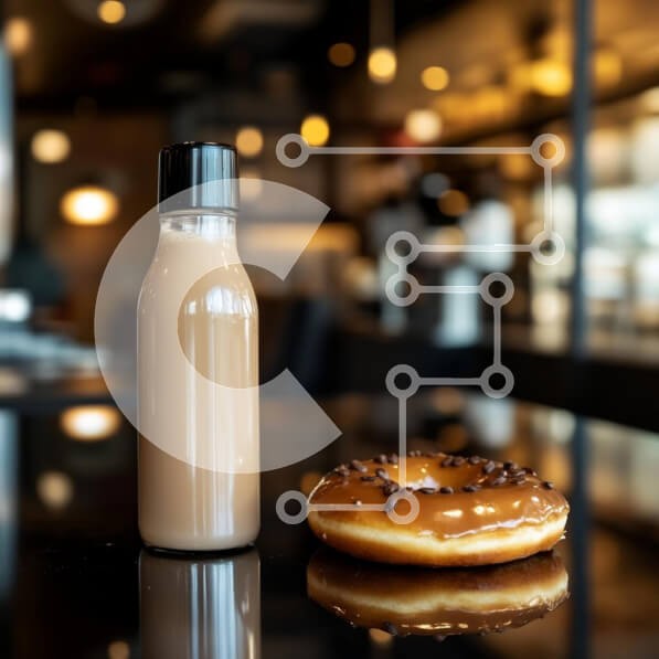 Υπάρχει δυνατότητα προσωποποίησης με δική σας φωτογραφία και προσαρμογής διαστάσεων κατόπιν παραγγελίας. Το συγεκεριμενο puzzle παρουσιαζει Αυτή η εικόνα παρουσιάζει ένα μπουκάλι καφέ κρεμώδους ροφήματος και ένα γλασέ ντόνατ με ψεκασμούς σοκολάτας, σε μια γυαλιστερή μαύρη επιφάνεια. Το φόντο είναι απαλά θολό, επιδεικνύοντας ζεστό εσωτερικό φωτισμό που προσθέτει στη φιλόξενη ατμόσφαιρα. Το ρόφημα είναι σε ένα διαφα