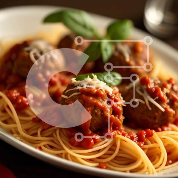 Υπάρχει δυνατότητα προσωποποίησης με δική σας φωτογραφία και προσαρμογής διαστάσεων κατόπιν παραγγελίας. Το συγεκεριμενο puzzle παρουσιαζει Αυτή η εικόνα παρουσιάζει ένα λαχταριστό πιάτο με μακαρόνια με κεφτεδάκια, με σάλτσα ντομάτας και τυρί παρμεζάνα. Σερβίρεται σε ξύλινο τραπέζι, μαζί με μια πλευρά ψωμί και ένα ποτήρι κόκκινο κρασί. Το πιάτο είναι τέλειο για να ικανοποιήσει τις λιγούρες σας για ένα νόστιμο ιταλ