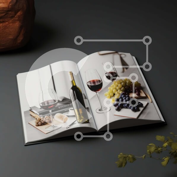 Υπάρχει δυνατότητα προσωποποίησης με δική σας φωτογραφία και προσαρμογής διαστάσεων κατόπιν παραγγελίας. Το συγεκεριμενο puzzle παρουσιαζει Η εικόνα παρουσιάζει ένα ανοιχτό βιβλίο με ένα ποτήρι κρασιού, σταφύλια και άλλα είδη διατροφής πάνω του. Ένα φυτό υπάρχει επίσης στην εικόνα, το οποίο θα μπορούσε να χρησιμοποιηθεί για να ενισχύσει την οπτική έλξη του βιβλίου. Επιπλέον, υπάρχουν δύο ποτήρια κρασί τοποθετημένα
