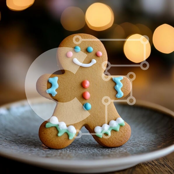 Υπάρχει δυνατότητα προσωποποίησης με δική σας φωτογραφία και προσαρμογής διαστάσεων κατόπιν παραγγελίας. Το συγεκεριμενο puzzle παρουσιαζει Η εικόνα παρουσιάζει ένα υπέροχο μπισκότο με μελόψωμο σε σχήμα ανθρώπινης φιγούρας. Διακοσμημένο με πολύχρωμο γλάσο, το μπισκότο έχει ένα χαμογελαστό πρόσωπο και διάφορα μοτίβα, όπως μπλε, ροζ και λευκά στολίδια. Τοποθετείται σε ένα ανάγλυφο πιάτο με φόντο απαλής εστίασης που