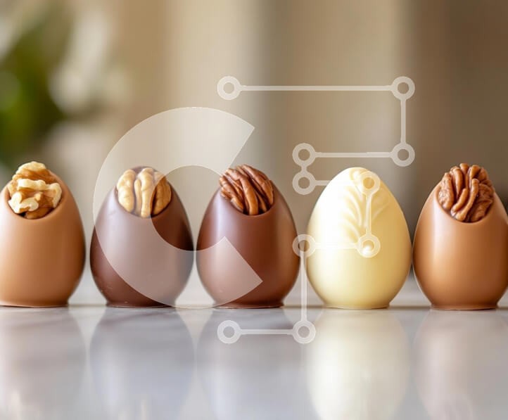 Υπάρχει δυνατότητα προσωποποίησης με δική σας φωτογραφία και προσαρμογής διαστάσεων κατόπιν παραγγελίας. Το συγεκεριμενο puzzle παρουσιαζει Αυτή η εικόνα παρουσιάζει μια υπέροχη διάταξη από σοκολατένια αυγά γεμάτα με διάφορους τύπους ξηρών καρπών, συμπεριλαμβανομένων καρυδιών και πεκάν. Τα αυγά εκτίθενται περίτεχνα στη σειρά, με το καθένα να παρουσιάζει ένα διαφορετικό είδος σοκολάτας, λευκής, γάλακτος και μαύρης.