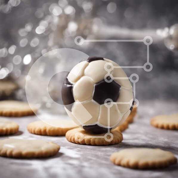 Υπάρχει δυνατότητα προσωποποίησης με δική σας φωτογραφία και προσαρμογής διαστάσεων κατόπιν παραγγελίας. Το συγεκεριμενο puzzle παρουσιαζει Αυτή η εικόνα δείχνει ένα μπισκότο σε σχήμα ποδοσφαίρου τοποθετημένο πάνω από ένα τραπέζι, που περιβάλλεται από διάφορους τύπους μπισκότων. Το μπισκότο σε σχήμα ποδοσφαίρου είναι διακοσμημένο με σοκολάτα και λευκό γλάσο, δίνοντάς του μια μοναδική εμφάνιση σαν να επιπλέει στο κ