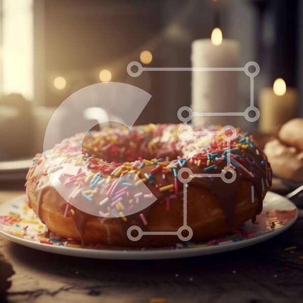 Υπάρχει δυνατότητα προσωποποίησης με δική σας φωτογραφία και προσαρμογής διαστάσεων κατόπιν παραγγελίας. Το συγεκεριμενο puzzle παρουσιαζει Αυτή η εικόνα δείχνει ένα νόστιμο γλασέ ντόνατ με πολύχρωμα ψεκάσματα, που στηρίζεται σε ένα λευκό πιάτο. Το πιάτο τοποθετείται σε ένα ξύλινο τραπέζι μπροστά από ένα ανοιχτό παράθυρο, το οποίο έχει μικρά κεριά στο περβάζι. Το φυσικό φως που περνά από το παράθυρο τονίζει την υφ