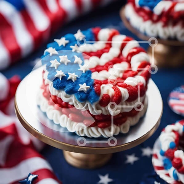 Υπάρχει δυνατότητα προσωποποίησης με δική σας φωτογραφία και προσαρμογής διαστάσεων κατόπιν παραγγελίας. Το συγεκεριμενο puzzle παρουσιαζει Η εικόνα παρουσιάζει μια τούρτα με πατριωτικό θέμα, στολισμένη με κόκκινο, λευκό και μπλε πάστα, τοποθετημένη σε δύο ασημένιες πιατέλες, με φόντο την αμερικανική σημαία. Μικρά cupcakes είναι επίσης ορατά στο τραπέζι, αφήνοντας να εννοηθεί ότι αποτελούν μέρος του γλυκού. Ένα μ