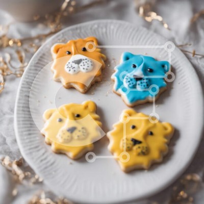 Υπάρχει δυνατότητα προσωποποίησης με δική σας φωτογραφία και προσαρμογής διαστάσεων κατόπιν παραγγελίας. Το συγεκεριμενο puzzle παρουσιαζει Αυτή η εικόνα παρουσιάζει τέσσερα μπισκότα σε σχήμα λιονταριού τοποθετημένα σε ένα λευκό πιάτο. Κάθε μπισκότο είναι διακοσμημένο με διαφορετικά χρώματα, όπως μπλε, κίτρινο και κόκκινο. Το πιάτο περιβάλλεται από χρυσά διακοσμητικά, δημιουργώντας μια γιορτινή ατμόσφαιρα. Αυτές ο
