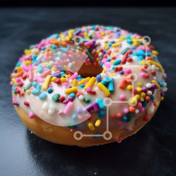 Υπάρχει δυνατότητα προσωποποίησης με δική σας φωτογραφία και προσαρμογής διαστάσεων κατόπιν παραγγελίας. Το συγεκεριμενο puzzle παρουσιαζει Αυτή η εικόνα παρουσιάζει ένα λαχταριστό γλασαρισμένο ντόνατ με πολύχρωμα ψεκάσματα. Το ντόνατ τοποθετείται σε μαύρη επιφάνεια, παρέχοντας μια ωραία αντίθεση στις πολύχρωμες επικαλύψεις. Αυτή η εικόνα είναι ιδανική για οποιοδήποτε έργο που σχετίζεται με φαγητό ή επιδόρπιο. Έν