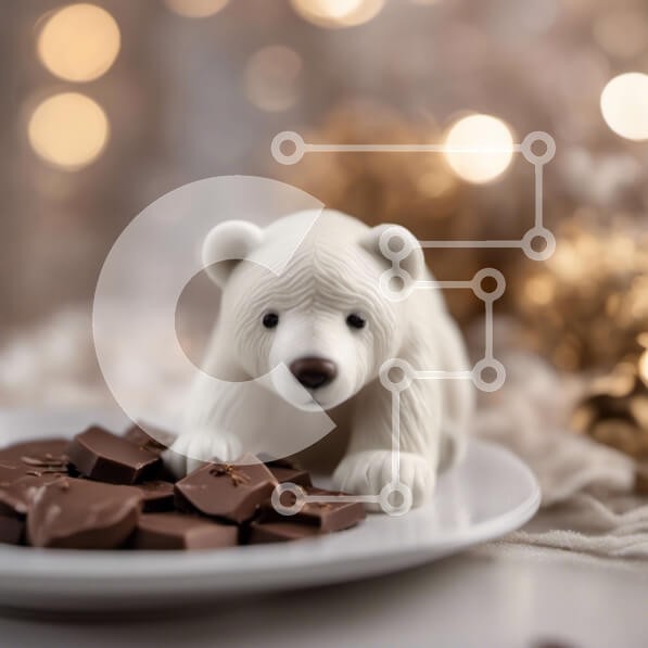 Υπάρχει δυνατότητα προσωποποίησης με δική σας φωτογραφία και προσαρμογής διαστάσεων κατόπιν παραγγελίας. Το συγεκεριμενο puzzle παρουσιαζει Αυτή η εικόνα παρουσιάζει ένα ειδώλιο λευκής πολικής αρκούδας τοποθετημένο πάνω από κομμάτια σοκολάτας διάσπαρτα σε ένα πιάτο. Στο βάθος, υπάρχει ένα διακοσμητικό κερί, προσθέτοντας μια επιπλέον πινελιά κομψότητας στη σκηνή. Αυτή η φωτογραφία είναι ιδανική για γενέθλια ή άλλες