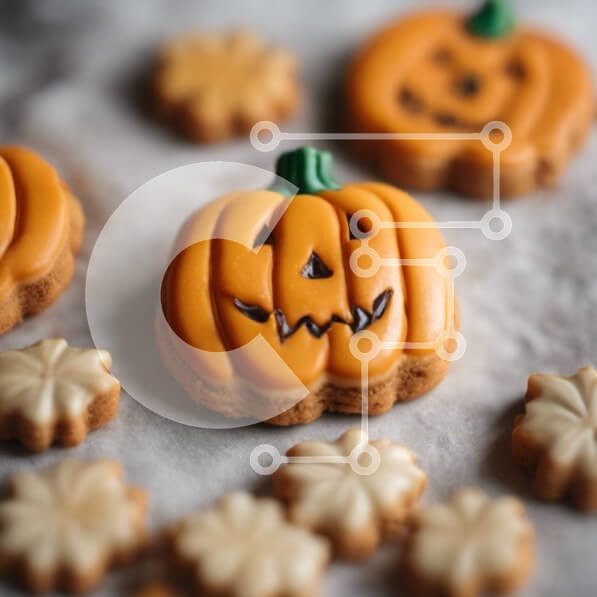 Υπάρχει δυνατότητα προσωποποίησης με δική σας φωτογραφία και προσαρμογής διαστάσεων κατόπιν παραγγελίας. Το συγεκεριμενο puzzle παρουσιαζει Αυτή η εικόνα παρουσιάζει μια ομάδα μπισκότων σε σχήμα κολοκύθας τοποθετημένα πάνω σε ένα κομμάτι χαρτί χωρίς ετικέτα. Τα μπισκότα είναι περίπλοκα διακοσμημένα με διαφορετικά σχέδια και χρώματα, όπως λευκό, πορτοκαλί, κίτρινο και μαύρο. Υπάρχουν επίσης μικρά κομμάτια ζύμης μπι