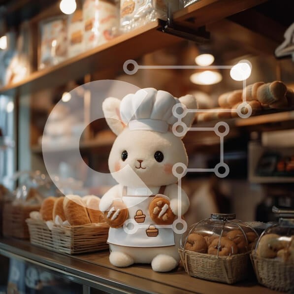 Υπάρχει δυνατότητα προσωποποίησης με δική σας φωτογραφία και προσαρμογής διαστάσεων κατόπιν παραγγελίας. Το συγεκεριμενο puzzle παρουσιαζει Αυτή η εικόνα παρουσιάζει ένα χαριτωμένο βελούδινο χαρακτήρα κουνελάκι ντυμένο σεφ, που στέκεται περήφανα σε ένα αρτοποιείο. Το κουνελάκι κρατά δύο μπισκότα και φοράει λευκό καπέλο και ποδιά σεφ. Πίσω από το λαγουδάκι, υπάρχουν ράφια γεμάτα με διάφορα αρτοσκευάσματα, όπως ψωμά