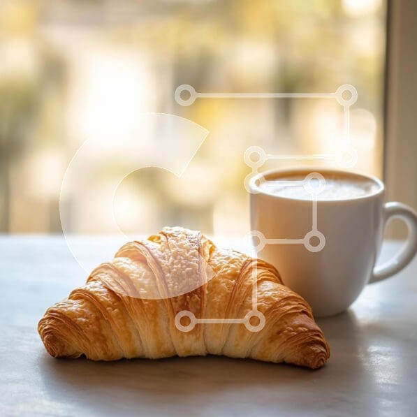 Υπάρχει δυνατότητα προσωποποίησης με δική σας φωτογραφία και προσαρμογής διαστάσεων κατόπιν παραγγελίας. Το συγεκεριμενο puzzle παρουσιαζει Αυτή η εικόνα παρουσιάζει ένα φρεσκοψημένο κρουασάν τοποθετημένο κομψά δίπλα σε ένα φλιτζάνι καφέ. Το κρουασάν έχει ένα χρυσοκαφέ, ξεφλουδισμένο εξωτερικό με ορατά στρώματα, που αναδεικνύει τη νόστιμη υφή του. Ο καφές σερβίρεται σε λευκό φλιτζάνι και το φόντο είναι απαλά θολό,