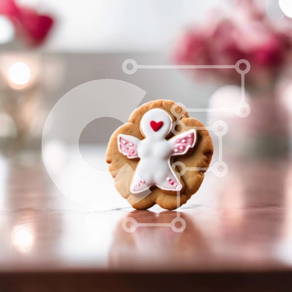 Υπάρχει δυνατότητα προσωποποίησης με δική σας φωτογραφία και προσαρμογής διαστάσεων κατόπιν παραγγελίας. Το συγεκεριμενο puzzle παρουσιαζει Αυτή η εικόνα δείχνει ένα μικρό μπισκότο διακοσμημένο με σχέδιο σε σχήμα αγγέλου. Τοποθετείται σε ένα τραπέζι μπροστά από λουλούδια, δημιουργώντας μια ρομαντική ατμόσφαιρα. Υπάρχουν επίσης και άλλα μικρά μπισκότα διάσπαρτα στο δωμάτιο, που υποδηλώνουν μια ειδική περίσταση ή γι