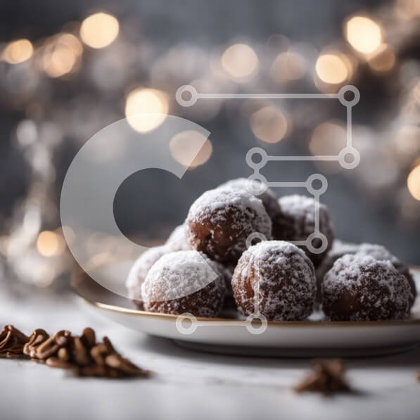 Υπάρχει δυνατότητα προσωποποίησης με δική σας φωτογραφία και προσαρμογής διαστάσεων κατόπιν παραγγελίας. Το συγεκεριμενο puzzle παρουσιαζει Αυτή η εικόνα δείχνει ένα λευκό πιάτο με πολλές μπάλες ντόνατ με επικάλυψη ζάχαρης τοποθετημένες πάνω από μερικά πεκάν. Το πιάτο περιβάλλεται από διάσπαρτες μπάλες ντόνατ. Στο βάθος, υπάρχει ένα διακοσμητικό φωτιστικό που αναδεικνύει τη γιορτινή ατμόσφαιρα της σκηνής. Η εικόνα