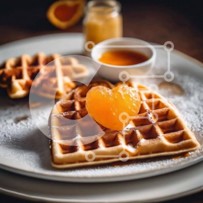 Υπάρχει δυνατότητα προσωποποίησης με δική σας φωτογραφία και προσαρμογής διαστάσεων κατόπιν παραγγελίας. Το συγεκεριμενο puzzle παρουσιαζει Η εικόνα δείχνει δύο βάφλες σε ένα λευκό πιάτο, με μια φέτα πορτοκαλιού να γαρνίρει τη μία από αυτές. Από πάνω πασπαλίζεται απαλά η άχνη ζάχαρη, ενισχύοντας τη γλύκα του πιάτου. Ένα μικρό μπολ κοντά υποδηλώνει την παρουσία σάλτσας ή σιροπιού. Ένα μοναδικό puzzle που συνδυάζει