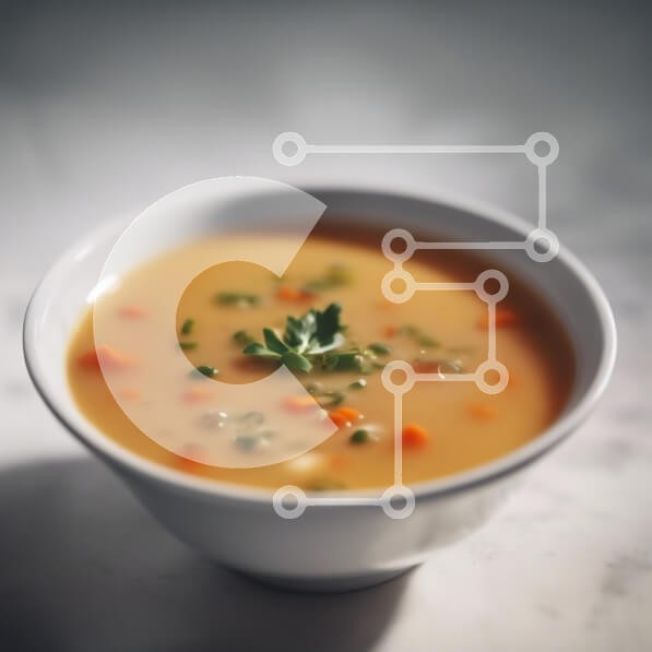 Υπάρχει δυνατότητα προσωποποίησης με δική σας φωτογραφία και προσαρμογής διαστάσεων κατόπιν παραγγελίας. Το συγεκεριμενο puzzle παρουσιαζει Αυτή η εικόνα παρουσιάζει ένα ζεστό μπολ με σούπα, που δείχνει έναν κρεμώδη ζωμό με πολύχρωμα λαχανικά κομμένα σε κύβους, όπως καρότα και πράσινα μπιζέλια. Η σούπα γαρνίρεται με ένα κλαδάκι φρέσκων μυρωδικών, πιθανότατα μαϊντανό, προσθέτοντας μια ζωηρή πινελιά στο πιάτο. Το μπ