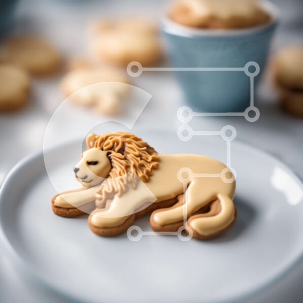 Υπάρχει δυνατότητα προσωποποίησης με δική σας φωτογραφία και προσαρμογής διαστάσεων κατόπιν παραγγελίας. Το συγεκεριμενο puzzle παρουσιαζει Αυτή η εικόνα δείχνει ένα περίτεχνα διακοσμημένο μπισκότο λιονταριού τοποθετημένο σε ένα λευκό πιάτο. Γύρω από το μπισκότο υπάρχουν μικρά φλιτζάνια, πιατάκια, πιάτα και μπολ, υποδεικνύοντας την παρουσία μιας διάταξης φαγητού. Η προσοχή στη λεπτομέρεια στη διακόσμηση των μπισκό