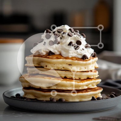 Υπάρχει δυνατότητα προσωποποίησης με δική σας φωτογραφία και προσαρμογής διαστάσεων κατόπιν παραγγελίας. Το συγεκεριμενο puzzle παρουσιαζει Αυτή η εικόνα παρουσιάζει μια στοίβα από αφράτες τηγανίτες με σαντιγί και κομματάκια σοκολάτας, τακτοποιημένα σε ένα γκρι πιάτο. Οι τηγανίτες έχουν μια χρυσοκαφέ απόχρωση και μια ελαφριά, αέρινη υφή, ενώ η σαντιγί είναι γενναιόδωρη και αφράτη, στολισμένη με μικρά κομματάκια σο