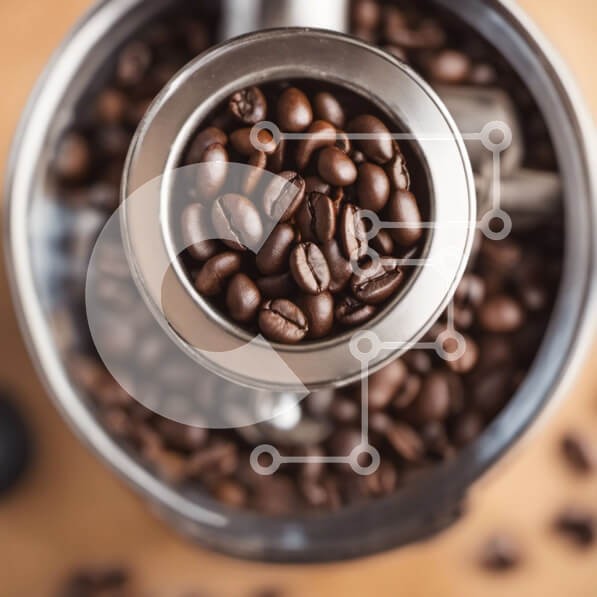 Υπάρχει δυνατότητα προσωποποίησης με δική σας φωτογραφία και προσαρμογής διαστάσεων κατόπιν παραγγελίας. Το συγεκεριμενο puzzle παρουσιαζει Αυτή η εικόνα παρουσιάζει μια κοντινή άποψη ενός μύλου καφέ με κόκκους καφέ που χύνονται από την κορυφή. Ο μύλος έχει σώμα από ανοξείδωτο χάλυβα και από πάνω μια διαφανή πλαστική χοάνη, γεμάτη με διάφορους τύπους κόκκων καφέ. Η σκηνή απεικονίζει έναν καλά συντηρημένο μύλο σε κ