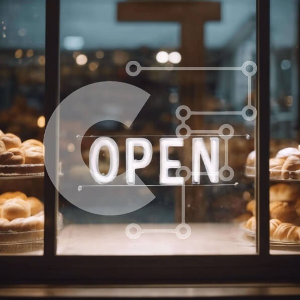 Υπάρχει δυνατότητα προσωποποίησης με δική σας φωτογραφία και προσαρμογής διαστάσεων κατόπιν παραγγελίας. Το συγεκεριμενο puzzle παρουσιαζει Η εικόνα παρουσιάζει μια οθόνη αρτοσκευασμάτων, συμπεριλαμβανομένων κρουασάν και ντόνατς, στο παράθυρο ενός ανοιχτού αρτοποιείου. Μια πινακίδα με τη λέξη "ανοιχτό" εμφανίζεται ευδιάκριτα στο μπροστινό μέρος του καταστήματος, δηλώνοντας ότι οι πελάτες είναι ευπρόσδεκτοι να περά