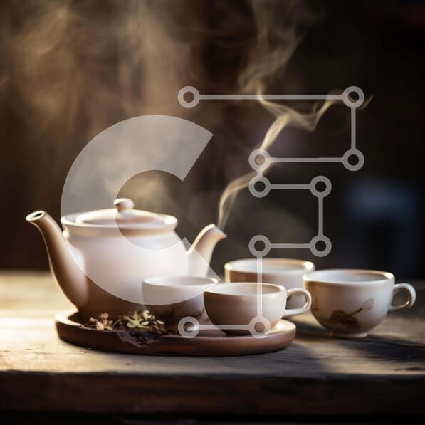 Υπάρχει δυνατότητα προσωποποίησης με δική σας φωτογραφία και προσαρμογής διαστάσεων κατόπιν παραγγελίας. Το συγεκεριμενο puzzle παρουσιαζει Αυτή η εικόνα δείχνει μια τσαγιέρα, φλιτζάνια και πιατάκια τοποθετημένα πάνω από έναν ανοιχτό ξύλινο δίσκο. Η τσαγιέρα εκπέμπει ατμό, υποδεικνύοντας ότι χρησιμοποιείται για την παρασκευή τσαγιού. Υπάρχουν επίσης διάφορα μαχαιροπίρουνα διάσπαρτα γύρω από την επιφάνεια εργασίας,