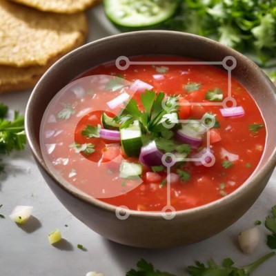 Υπάρχει δυνατότητα προσωποποίησης με δική σας φωτογραφία και προσαρμογής διαστάσεων κατόπιν παραγγελίας. Το συγεκεριμενο puzzle παρουσιαζει Αυτή η εικόνα παρουσιάζει ένα μπολ με σάλτσα φρέσκιας ντομάτας, όμορφα διακοσμημένη με κόλιανδρο, ντομάτες κομμένες σε κύβους, αγγούρια και κόκκινα κρεμμύδια. Το ζωηρό κόκκινο χρώμα της σάλσας έρχεται σε κομψή αντίθεση με τα πράσινα βότανα και τα λαχανικά, δημιουργώντας ένα φι