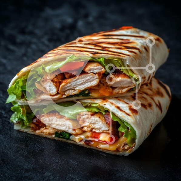 Υπάρχει δυνατότητα προσωποποίησης με δική σας φωτογραφία και προσαρμογής διαστάσεων κατόπιν παραγγελίας. Το συγεκεριμενο puzzle παρουσιαζει Αυτή η εικόνα δείχνει ένα υπέροχο περιτύλιγμα γεμάτο με ψητό κοτόπουλο, φρέσκο μαρούλι, ντομάτες σε κύβους και μείγμα τυριού, όλα τυλιγμένα σε μια ελαφρά ψημένη τορτίγια. Το περιτύλιγμα κόβεται στη μέση για να αποκαλύψει την πολύχρωμη γέμισή του και κάθεται σε σκούρο φόντο π