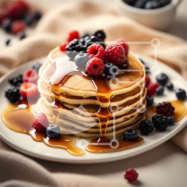 Υπάρχει δυνατότητα προσωποποίησης με δική σας φωτογραφία και προσαρμογής διαστάσεων κατόπιν παραγγελίας. Το συγεκεριμενο puzzle παρουσιαζει Αυτή η εικόνα παρουσιάζει μια στοίβα από τηγανίτες με φρέσκα μούρα και περιχυμένες με σιρόπι. Οι τηγανίτες είναι αφράτες και χρυσοκάστανες και τα μούρα προσθέτουν μια έκρηξη ζωντανού χρώματος. Το σιρόπι γυαλίζει καθώς πέφτει στα πλαϊνά των τηγανιτών, δημιουργώντας μια δελεαστι