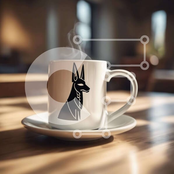Υπάρχει δυνατότητα προσωποποίησης με δική σας φωτογραφία και προσαρμογής διαστάσεων κατόπιν παραγγελίας. Το συγεκεριμενο puzzle παρουσιαζει Η εικόνα απεικονίζει ένα μαύρο φλιτζάνι καφέ με σχέδιο αιγυπτιακού σκύλου τοποθετημένο πάνω από ένα πιατάκι, που αχνίζει από το ζεστό ρόφημα μέσα. Άλλα αντικείμενα στην εικόνα περιλαμβάνουν κούπες, πιάτα και χαρτοπετσέτες. Ένα μοναδικό puzzle που συνδυάζει ποιότητα, αισθητική