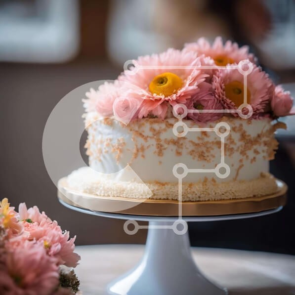 Υπάρχει δυνατότητα προσωποποίησης με δική σας φωτογραφία και προσαρμογής διαστάσεων κατόπιν παραγγελίας. Το συγεκεριμενο puzzle παρουσιαζει Η εικόνα παρουσιάζει μια λευκή τούρτα με ροζ λουλούδια τοποθετημένα πάνω της. Το κέικ είναι διακοσμημένο με λευκό γλάσο και τα λουλούδια τοποθετούνται σε διάφορα σημεία γύρω από το κέικ για να προσθέσουν οπτικό ενδιαφέρον. Υπάρχουν πολλά τραπέζια που περιβάλλουν το τραπέζι, τα