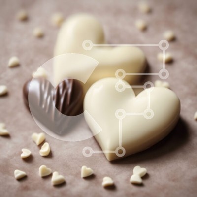 Υπάρχει δυνατότητα προσωποποίησης με δική σας φωτογραφία και προσαρμογής διαστάσεων κατόπιν παραγγελίας. Το συγεκεριμενο puzzle παρουσιαζει Αυτή η εικόνα παρουσιάζει τρεις σοκολάτες σε σχήμα καρδιάς, η μία από τις οποίες είναι λευκού χρώματος και η άλλη είναι ένας συνδυασμός λευκής και μαύρης σοκολάτας. Η επιφάνεια του τραπεζιού είναι διάσπαρτη με μικρά κομμάτια σοκολάτας, προσθέτοντας τη διακοσμητική αίσθηση. Είν
