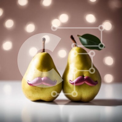 Υπάρχει δυνατότητα προσωποποίησης με δική σας φωτογραφία και προσαρμογής διαστάσεων κατόπιν παραγγελίας. Το συγεκεριμενο puzzle παρουσιαζει Αυτή η εικόνα παρουσιάζει δύο αχλάδια με μουστάκια και πράσινα φύλλα σε καθαρό λευκό φόντο. Τα αχλάδια είναι τοποθετημένα το ένα δίπλα στο άλλο, στο κέντρο ενός τραπεζιού. Γύρω τους υπάρχουν φώτα, υποδηλώνοντας ότι μπορεί να αποτελούν μέρος μιας δημιουργικής έκθεσης ή διακόσμη