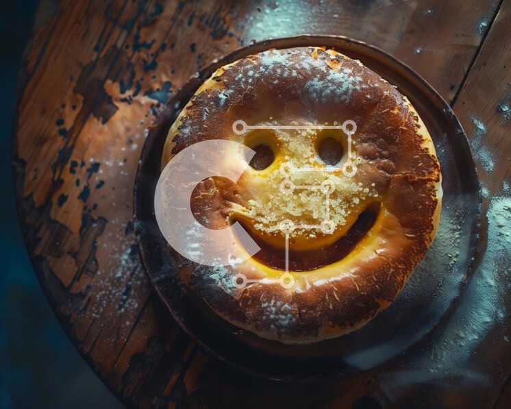 Υπάρχει δυνατότητα προσωποποίησης με δική σας φωτογραφία και προσαρμογής διαστάσεων κατόπιν παραγγελίας. Το συγεκεριμενο puzzle παρουσιαζει Η εικόνα δείχνει ένα χαμογελαστό ψωμί σε σχήμα προσώπου πάνω από ένα ξύλινο τραπέζι. Το ψωμί καλύπτεται με ζάχαρη άχνη, υποδηλώνοντας ότι έχει φρεσκοψηθεί. Μπορεί να έχει τοποθετηθεί στο τραπέζι για να χρησιμεύσει ως ορεκτικό ή επιδόρπιο. Ένα μοναδικό puzzle που συνδυάζει ποι