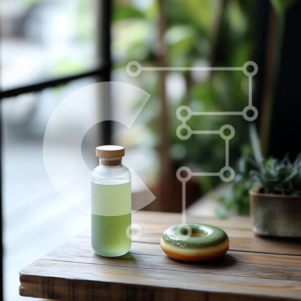 Υπάρχει δυνατότητα προσωποποίησης με δική σας φωτογραφία και προσαρμογής διαστάσεων κατόπιν παραγγελίας. Το συγεκεριμενο puzzle παρουσιαζει Η εικόνα παρουσιάζει ένα γυάλινο μπουκάλι που περιέχει ένα ανοιχτό πράσινο υγρό, τοποθετημένο σε ένα ξύλινο τραπέζι. Δίπλα του υπάρχει ένα στρογγυλό ντόνατ με ένα γυαλιστερό πράσινο πάγωμα, που δημιουργεί μια ελκυστική αντίθεση στη ρουστίκ ξύλινη επιφάνεια. Το φόντο είναι απαλ