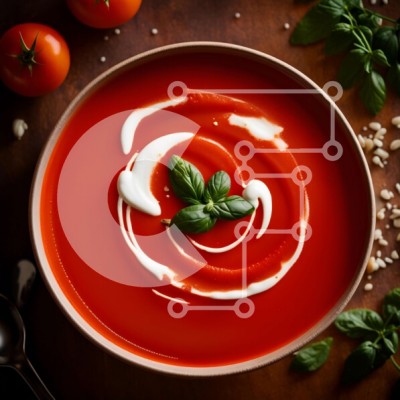 Υπάρχει δυνατότητα προσωποποίησης με δική σας φωτογραφία και προσαρμογής διαστάσεων κατόπιν παραγγελίας. Το συγεκεριμενο puzzle παρουσιαζει Αυτή η εικόνα δείχνει ένα μπολ με σούπα ντομάτας με κρεμώδη σάλτσα και φρέσκα φύλλα βασιλικού. Η σούπα είναι πλούσια σε γεύση και έχει λεία, κρεμώδη υφή. Σερβίρεται σε λευκό μπολ, με τη σάλτσα να περιχύνεται από πάνω και τα φύλλα φρέσκου βασιλικού να τοποθετούνται στο πλάι. Τα