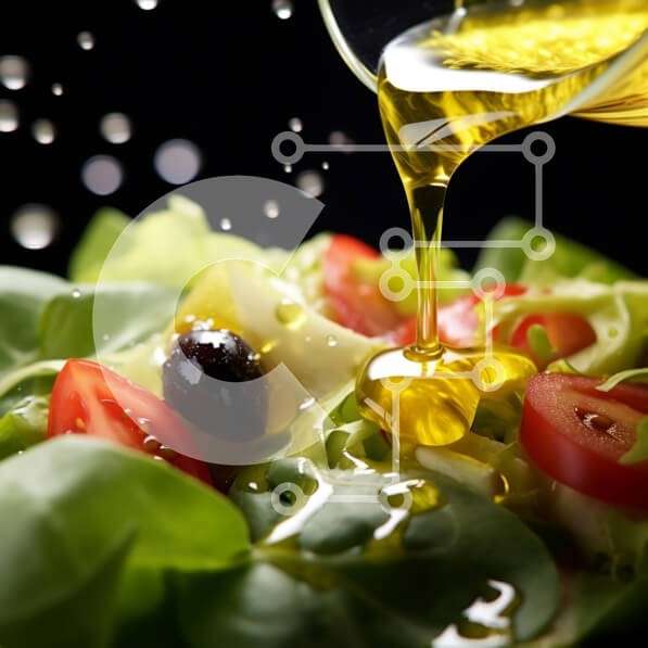 Υπάρχει δυνατότητα προσωποποίησης με δική σας φωτογραφία και προσαρμογής διαστάσεων κατόπιν παραγγελίας. Το συγεκεριμενο puzzle παρουσιαζει Η εικόνα απεικονίζει μια σαλάτα με ντομάτες, ελιές και μαρούλι να περιχύνεται με ελαιόλαδο. Υπάρχουν επίσης σταγόνες λαδιού που πέφτουν από την κορυφή της σαλάτας, υποδηλώνοντας ότι το ντρέσινγκ χύνεται στα χόρτα. Ένα μαύρο φόντο φαίνεται στην εικόνα, το οποίο προσθέτει στη συ