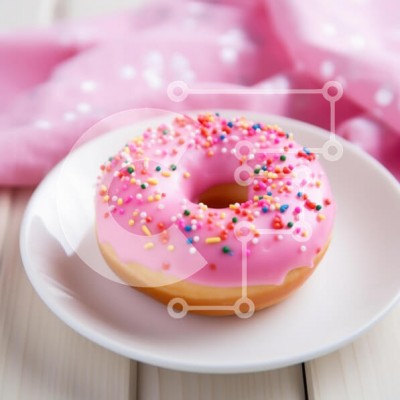 Υπάρχει δυνατότητα προσωποποίησης με δική σας φωτογραφία και προσαρμογής διαστάσεων κατόπιν παραγγελίας. Το συγεκεριμενο puzzle παρουσιαζει Αυτή η εικόνα παρουσιάζει ένα νόστιμο ροζ παγωμένο ντόνατ στολισμένο με πολύχρωμα ψεκάσματα, που στηρίζεται σε ένα λευκό πιάτο. Το φόντο είναι απαλά θολό με ένα απαλό ροζ ύφασμα που έχει λευκές πουά, ενισχύοντας την παιχνιδιάρικη και ελκυστική εμφάνιση του ντόνατ. Η ξύλινη επι