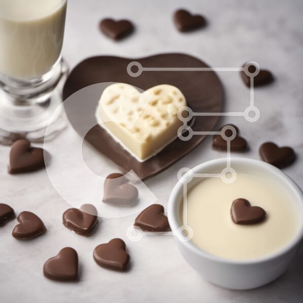 Υπάρχει δυνατότητα προσωποποίησης με δική σας φωτογραφία και προσαρμογής διαστάσεων κατόπιν παραγγελίας. Το συγεκεριμενο puzzle παρουσιαζει Αυτή η εικόνα παρουσιάζει ένα πιάτο σε σχήμα καρδιάς γεμάτο με καρδιές σοκολάτας, συνοδευόμενο από δύο μικρά μπολ με γάλα και σοκολάτα. Ένα άδειο ποτήρι τοποθετείται στη μέση του πιάτου, υποδηλώνοντας τη δυνατότητα να ρίχνουμε γάλα από το ένα μπολ στο άλλο. Στο τραπέζι υπάρχου