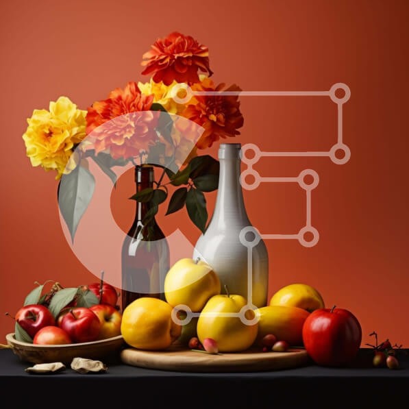 Υπάρχει δυνατότητα προσωποποίησης με δική σας φωτογραφία και προσαρμογής διαστάσεων κατόπιν παραγγελίας. Το συγεκεριμενο puzzle παρουσιαζει Η εικόνα δείχνει μια ζωντανή διάταξη από πορτοκαλί και κίτρινα λουλούδια σε ένα βάζο, συνοδευόμενη από μια ποικιλία φρούτων, όπως μήλα, σταφύλια και άλλα. Ένα μπουκάλι κρασί περιλαμβάνεται επίσης στο τραπέζι, βελτιώνοντας την οθόνη. Η σκηνή μεταφέρει μια αίσθηση κοινής χρήσης