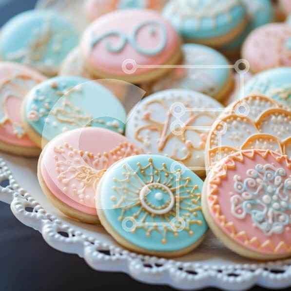 Υπάρχει δυνατότητα προσωποποίησης με δική σας φωτογραφία και προσαρμογής διαστάσεων κατόπιν παραγγελίας. Το συγεκεριμενο puzzle παρουσιαζει Η εικόνα διαθέτει μια όμορφα διαρρυθμισμένη πιατέλα με διακοσμημένα μπισκότα, με περίπλοκα σχέδια γλάσου σε παστέλ χρώματα του μπλε, του ροζ και του λευκού. Τα μπισκότα είναι στρογγυλά και έχουν λεπτομερή μοτίβα, όπως μοτίβα λουλουδιών και γεωμετρικά σχήματα, όλα κομψά κατασκε