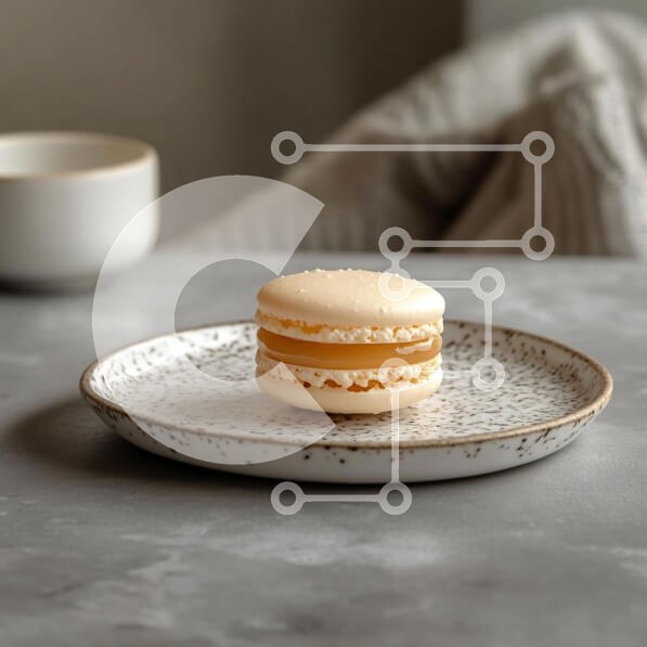 Υπάρχει δυνατότητα προσωποποίησης με δική σας φωτογραφία και προσαρμογής διαστάσεων κατόπιν παραγγελίας. Το συγεκεριμενο puzzle παρουσιαζει Αυτή η εικόνα παρουσιάζει ένα όμορφα επιμεταλλωμένο μακαρόν σε ένα πιάτο με στίγματα. Το macaron είναι μια λεπτή ζύμη με απαλό, απαλό εξωτερικό και γέμιση τριών στρώσεων ορατή στο κέντρο. Το φόντο είναι απαλά θολό, με ένα φλιτζάνι να φαίνεται μερικώς, δημιουργώντας μια ήρεμη κ