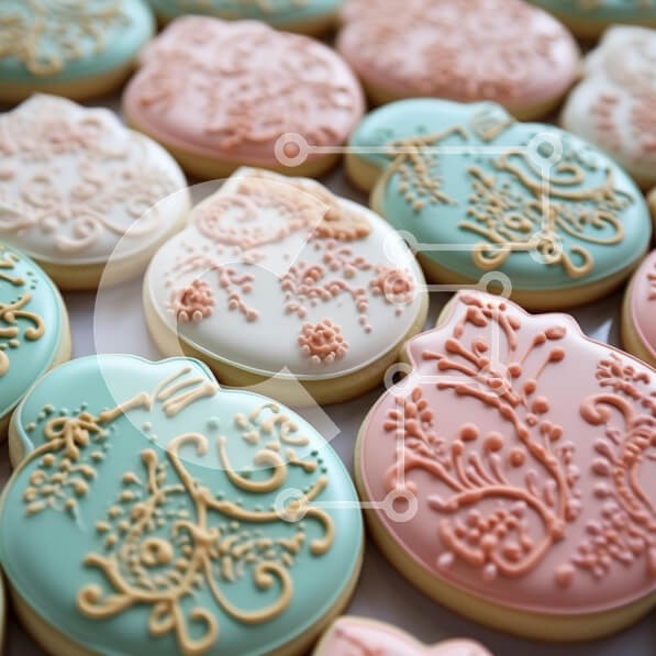 Υπάρχει δυνατότητα προσωποποίησης με δική σας φωτογραφία και προσαρμογής διαστάσεων κατόπιν παραγγελίας. Το συγεκεριμενο puzzle παρουσιαζει Αυτή η εικόνα παρουσιάζει μια συλλογή από όμορφα διακοσμημένα μπισκότα τοποθετημένα στενά μεταξύ τους. Τα μπισκότα είναι σε διάφορα παστέλ χρώματα, κυρίως πράσινο της μέντας και απαλό ροζ, το καθένα διακοσμημένο περίπλοκα με λεπτομερή σχέδια γλάσου που μοιάζουν με λουλουδάτα μ
