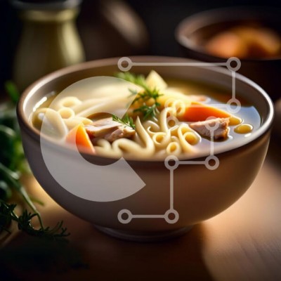 Υπάρχει δυνατότητα προσωποποίησης με δική σας φωτογραφία και προσαρμογής διαστάσεων κατόπιν παραγγελίας. Το συγεκεριμενο puzzle παρουσιαζει Αυτή η εικόνα δείχνει ένα υπέροχο μπολ σούπας με ζυμαρικά και λαχανικά. Η σούπα αχνίζει ζεστή, με τις χυλοπίτες άψογα ψημένες και τα λαχανικά να προσθέτουν ζωηρά χρώματα στο πιάτο. Είναι ένα θρεπτικό και υγιεινό γεύμα που είναι ταυτόχρονα ανακουφιστικό και χορταστικό. Ένα μον