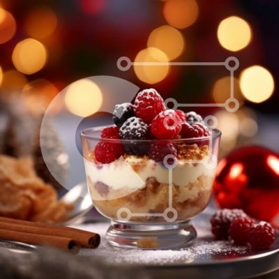 Υπάρχει δυνατότητα προσωποποίησης με δική σας φωτογραφία και προσαρμογής διαστάσεων κατόπιν παραγγελίας. Το συγεκεριμενο puzzle παρουσιαζει Αυτή η εικόνα είναι ένα νόστιμο επιδόρπιο που αποτελείται από πουτίγκα με σμέουρα, βατόμουρα και ξυλάκια κανέλας. Το στήσιμο βρίσκεται σε ένα τραπέζι με φόντο ένα χριστουγεννιάτικο δέντρο, δημιουργώντας μια εορταστική και ζεστή ατμόσφαιρα. Ένα μοναδικό puzzle που συνδυάζει πο