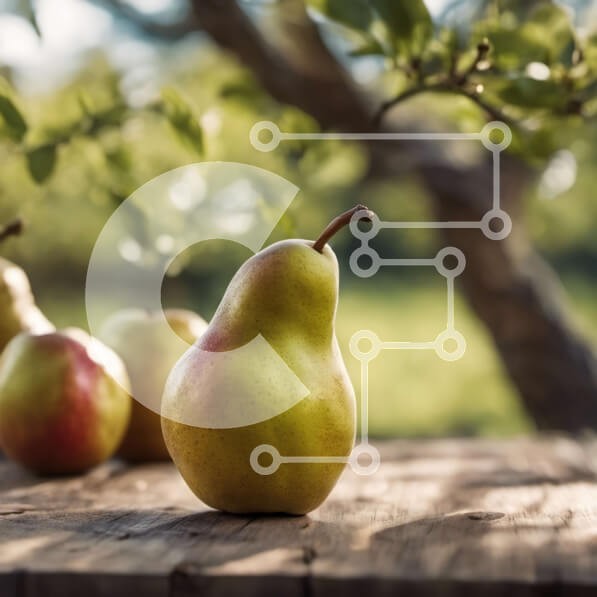 Υπάρχει δυνατότητα προσωποποίησης με δική σας φωτογραφία και προσαρμογής διαστάσεων κατόπιν παραγγελίας. Το συγεκεριμενο puzzle παρουσιαζει Αυτή η εικόνα παρουσιάζει τρία ώριμα αχλάδια που κάθονται σε ένα ξύλινο τραπέζι μπροστά από ένα δέντρο. Τα αχλάδια έχουν μια ελαφριά λάμψη και έχουν ένα ζωηρό πράσινο χρώμα. Το δέντρο στο βάθος έχει πράσινα φύλλα και μερικά ώριμα μήλα που κρέμονται από τα κλαδιά του. Ο φυσικός