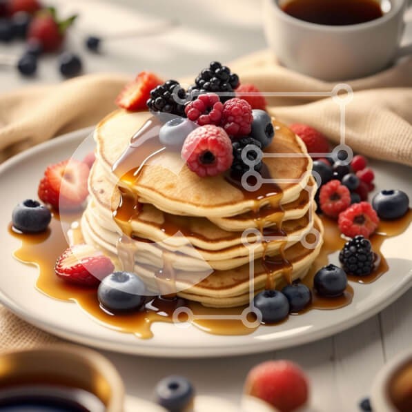 Υπάρχει δυνατότητα προσωποποίησης με δική σας φωτογραφία και προσαρμογής διαστάσεων κατόπιν παραγγελίας. Το συγεκεριμενο puzzle παρουσιαζει Αυτή η εικόνα παρουσιάζει μια στοίβα από τηγανίτες που είναι τέλεια μαγειρεμένες και καλύπτονται με σιρόπι, βατόμουρα και φράουλες. Οι τηγανίτες είναι ελαφριές και αφράτες, ενώ το σιρόπι προσθέτει μια γλυκιά και κολλώδη πινελιά. Τα ζωηρά χρώματα των φρέσκων μούρων κάνουν το πι