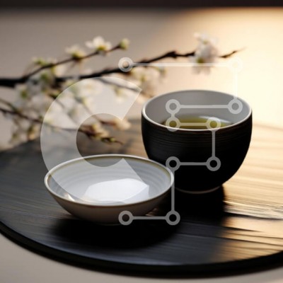 Υπάρχει δυνατότητα προσωποποίησης με δική σας φωτογραφία και προσαρμογής διαστάσεων κατόπιν παραγγελίας. Το συγεκεριμενο puzzle παρουσιαζει Αυτή η εικόνα παρουσιάζει έναν μαύρο δίσκο με δύο φλιτζάνια, το ένα γεμάτο με πράσινο τσάι και το άλλο με νερό. Ένα λευκό μπολ τοποθετείται δίπλα στο φλιτζάνι στο δίσκο, υποδηλώνοντας ότι θα μπορούσε να χρησιμοποιηθεί για το σερβίρισμα τσαγιού. Στο βάθος, τα άνθη προσθέτουν μι